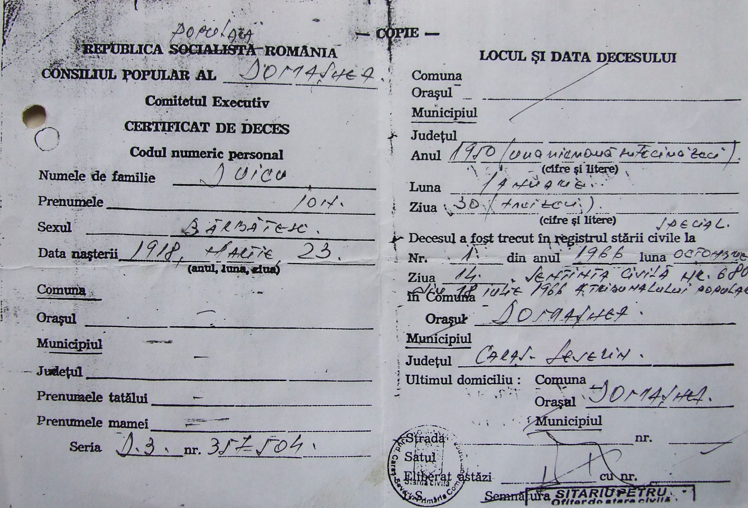 Fotografia cu Petru Românu face parte dintr-o colecţie de familie.